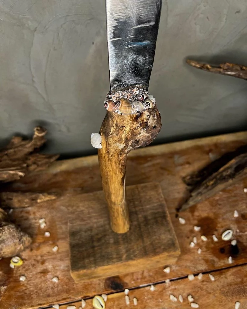 O Alfange de Oxaguiã é a lâmina da suavidade e da ação equilibrada. Símbolo de corte sagrado e abertura de caminhos, manifesta o poder jovem e sereno de Oxaguiã nas decisões justas e na construção da paz. Cada peça é feita artesanalmente para evocar a leveza e a firmeza do guerreiro da luz.