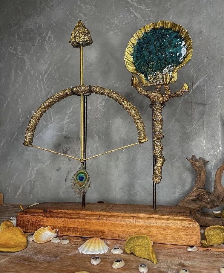 Entre a precisão do Ofá e o brilho do Abebê, este conjunto de Logunedé protege e guia, levando fartura e conquista a cada novo caminho que se abre.