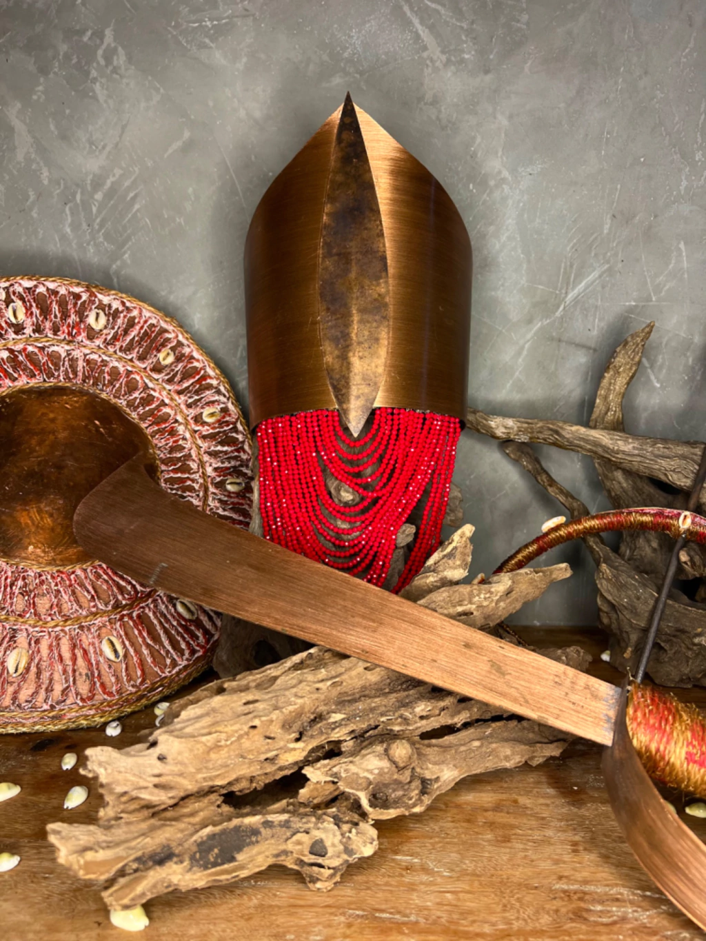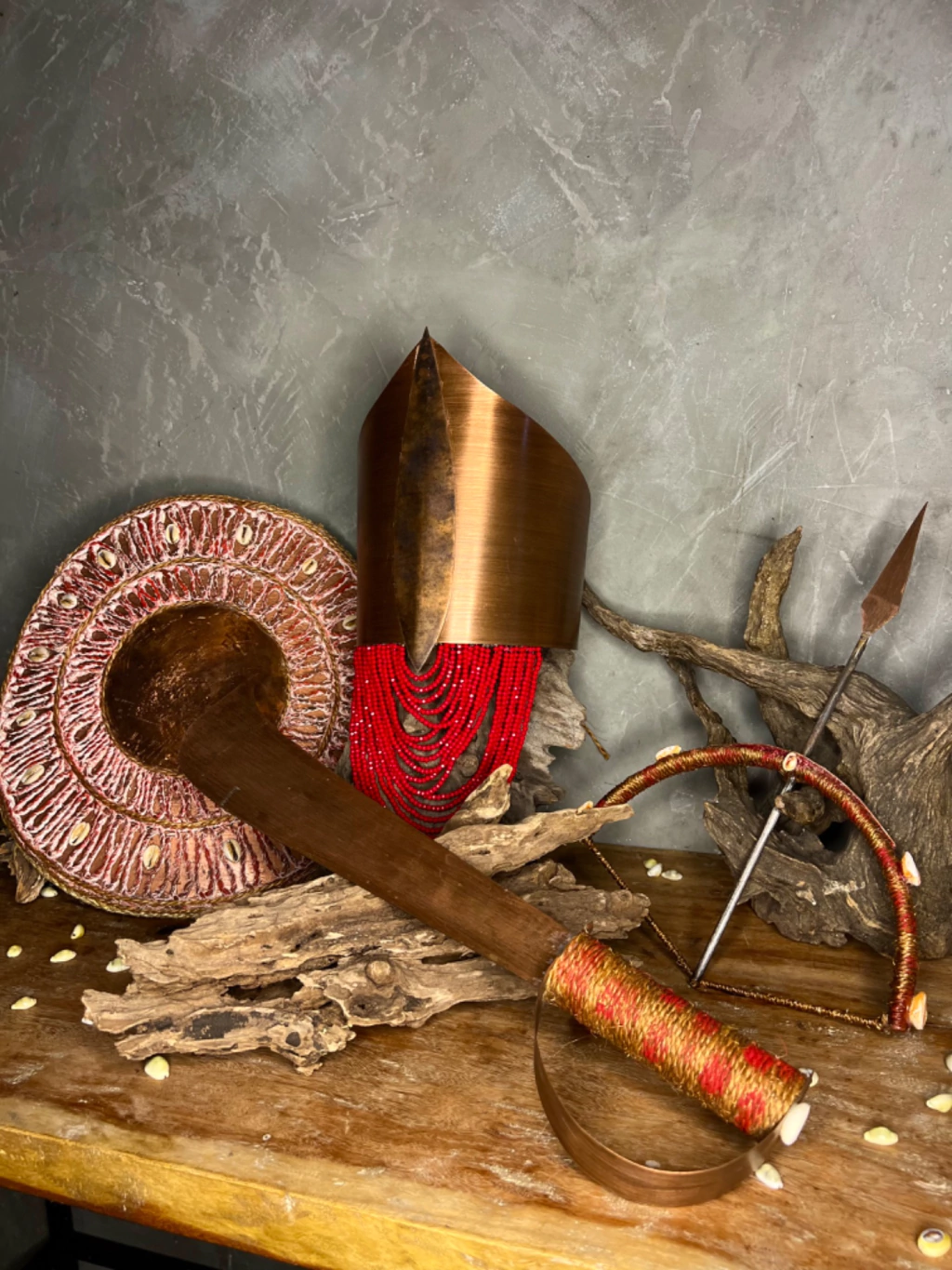 O Conjunto de Obá reúne a força corajosa e a astúcia da grande guerreira dos rios. Cada peça vibra o axé da resistência, da inteligência e da superação, exaltando a bravura e a dignidade de quem enfrenta todas as batalhas com honra e sabedoria.