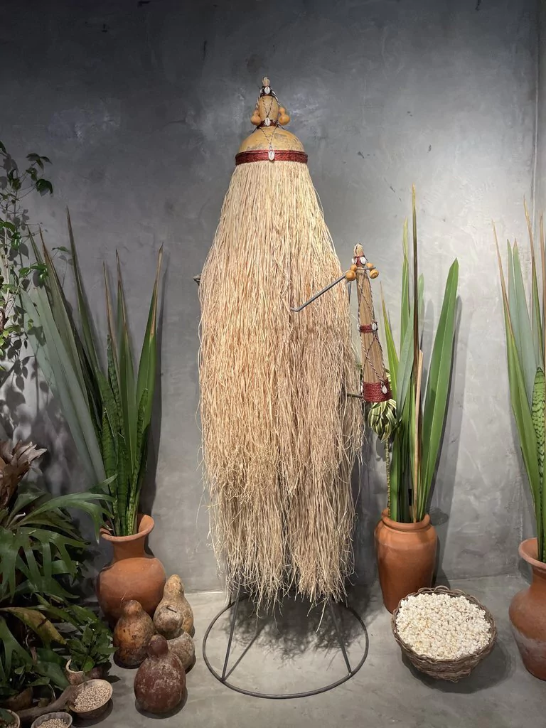 Azê: Feito de cabaça, com o corpo coberto por palha da costa, simbolizando o mistério e a força do Orixá.