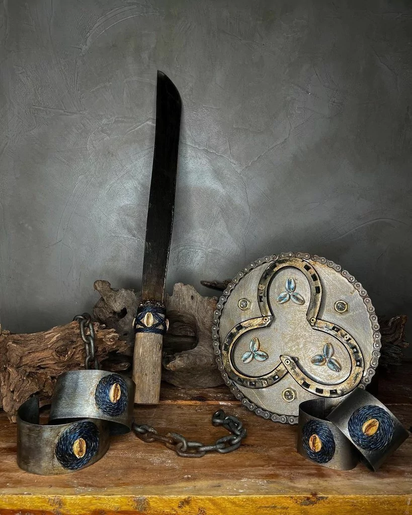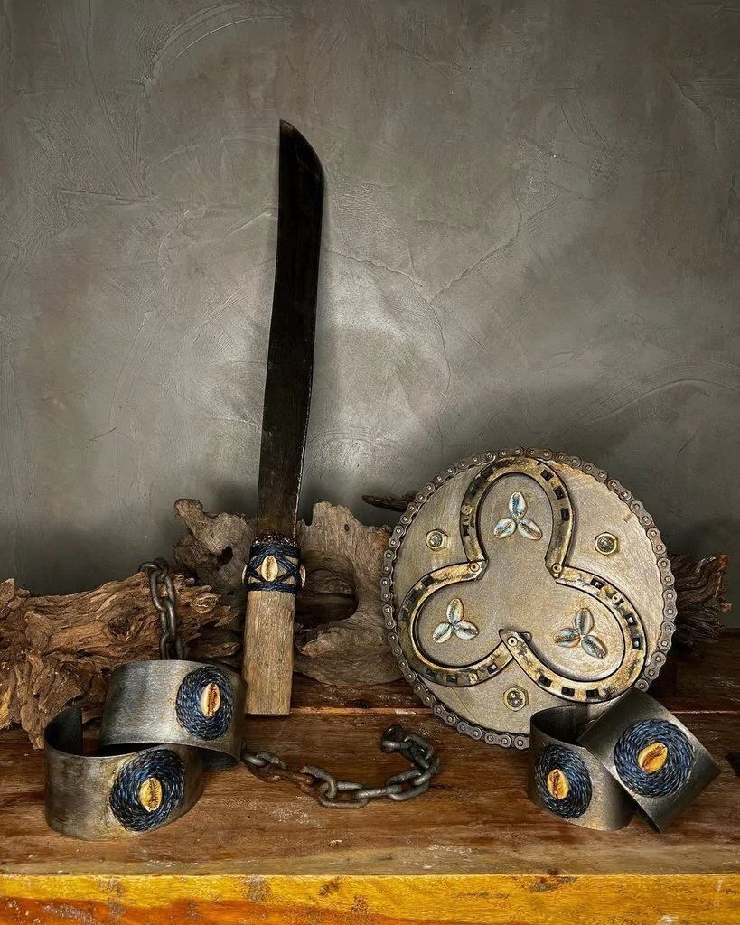 Conjunto de Ogum com Alfange, Braceletes, Escudo e Pulseiras