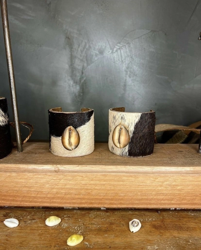 Com pelo animal e um búzio, as pulseiras completam o conjunto com um toque de espiritualidade e força.