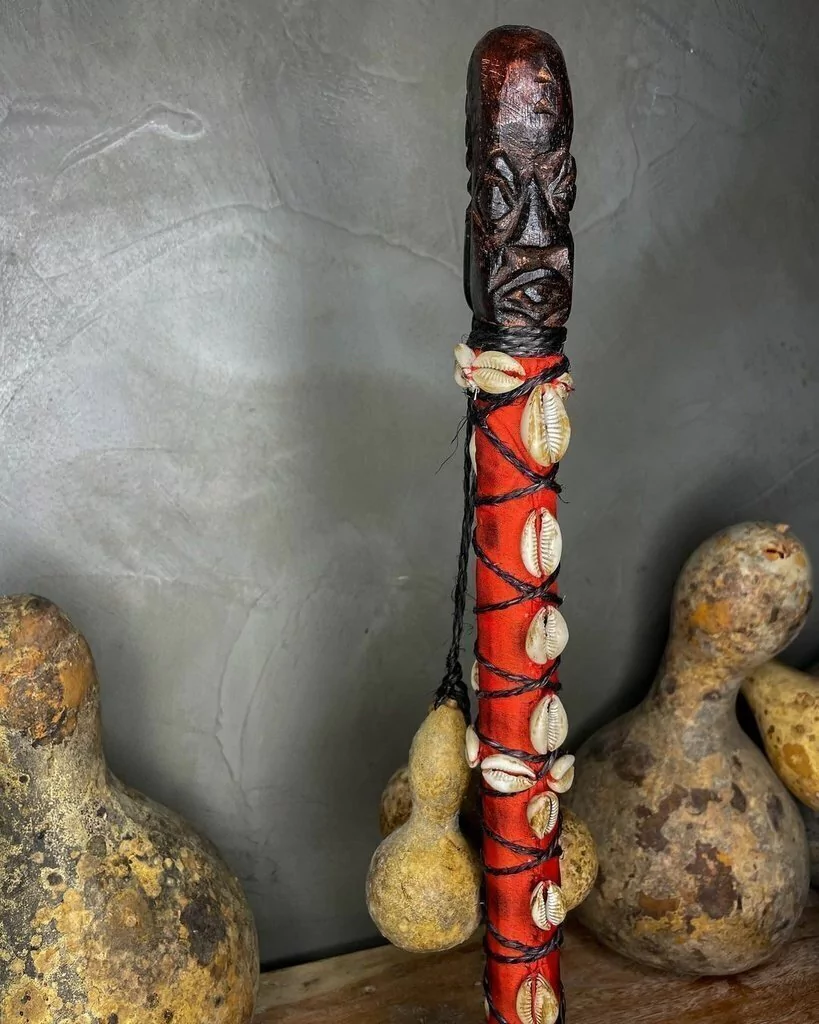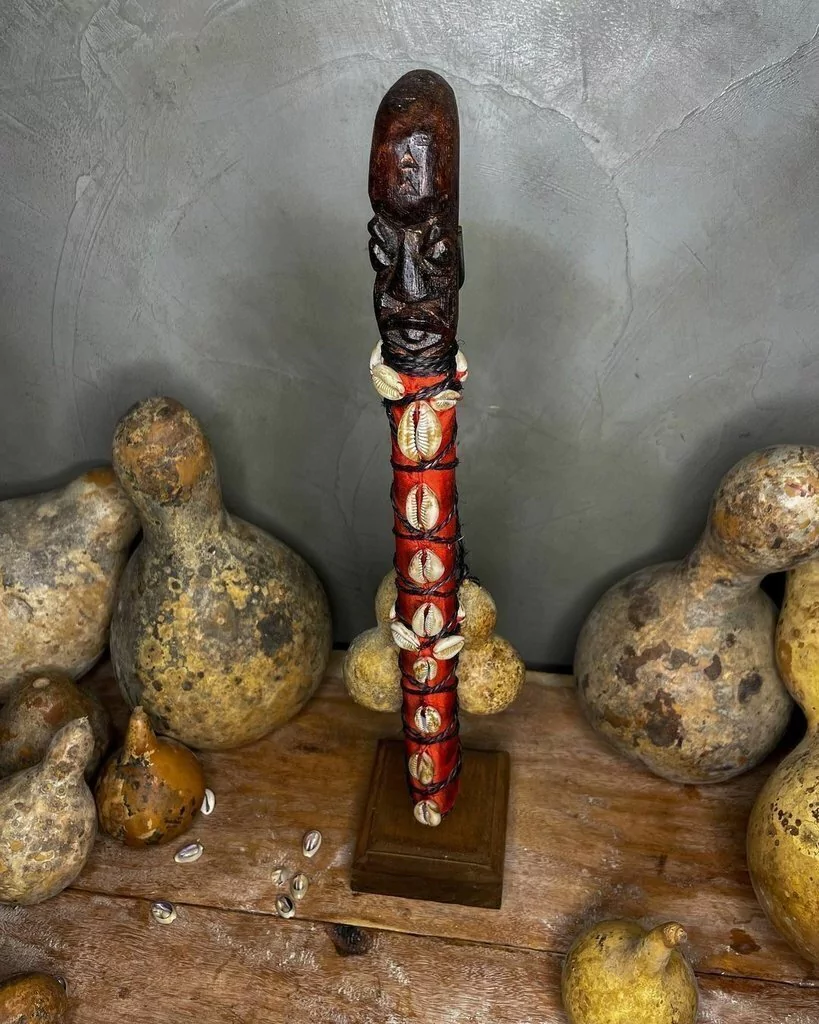 O Ogó de Exu é símbolo de comunicação viva, abertura de caminhos e sustentação espiritual. Instrumento ancestral, o Ogó manifesta o poder do verbo, do movimento e da ação consciente. Cada peça carrega o domínio de Exu sobre as palavras e os fluxos, reverberando o axé que conduz e transforma.