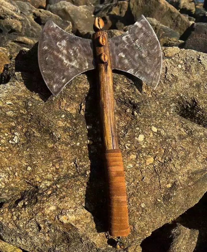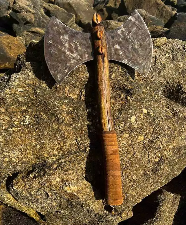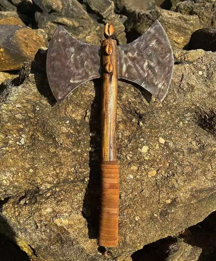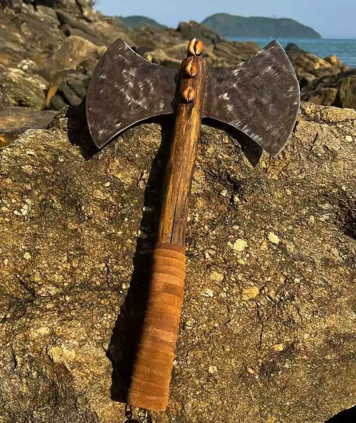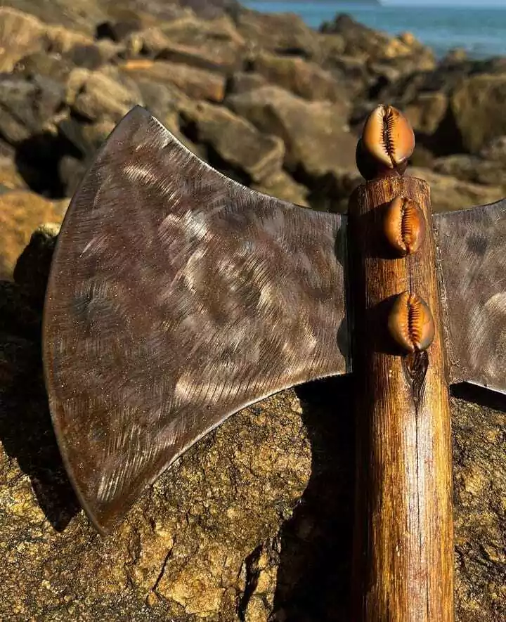 Esta peça carrega a força e a justiça de Xangô, representando seu poder e equilíbrio. Com um design imponente, o Oxê é elaborado com materiais de alta qualidade, mantendo a tradição e o respeito ao orixá.